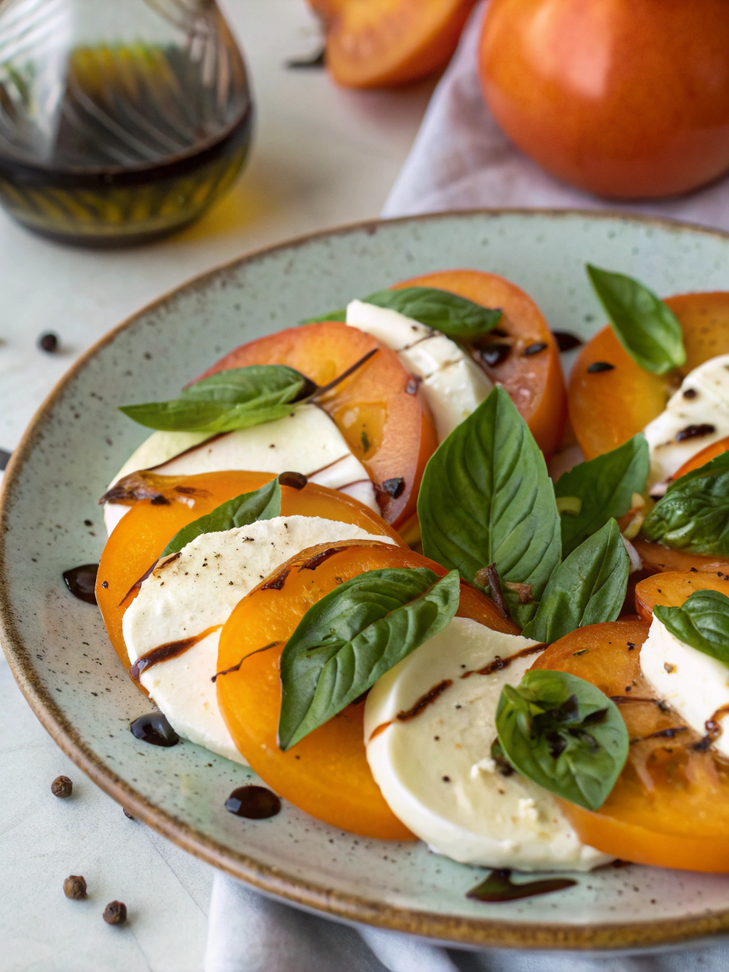 If persimmons aren’t available, try peaches, nectarines, or even strawberries in summer, or pears in fall/winter. Each fruit brings its unique character while maintaining the sweet-savory balance that makes caprese salads so appealing.