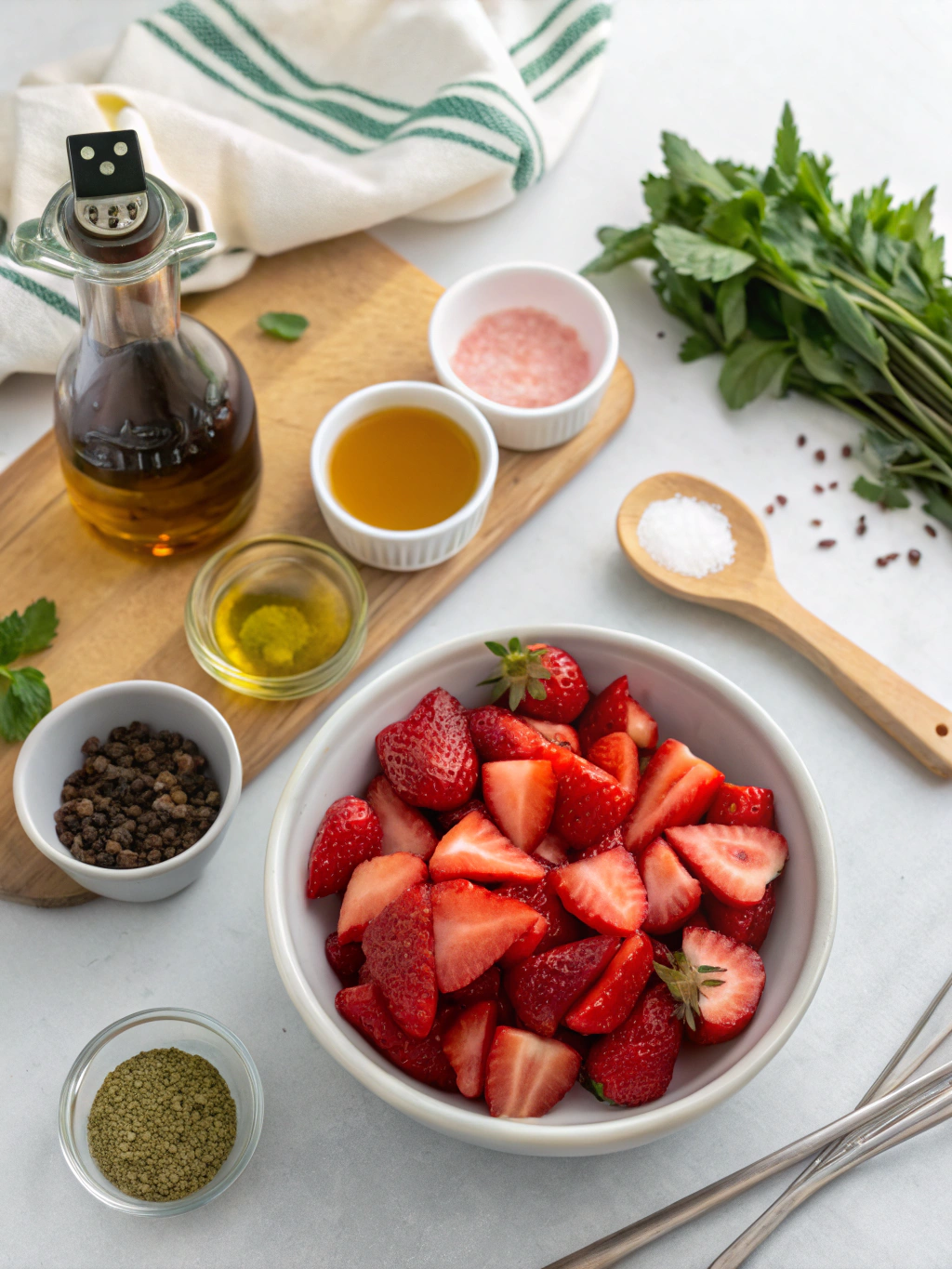 The vibrant red strawberries provide both natural sweetness and a stunning color that makes this strawberry vinaigrette recipe as visually appealing as it is delicious.