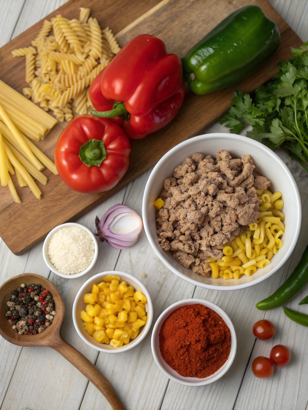 Gather these fresh, flavorful ingredients for your quick Mexican pasta masterpiece: