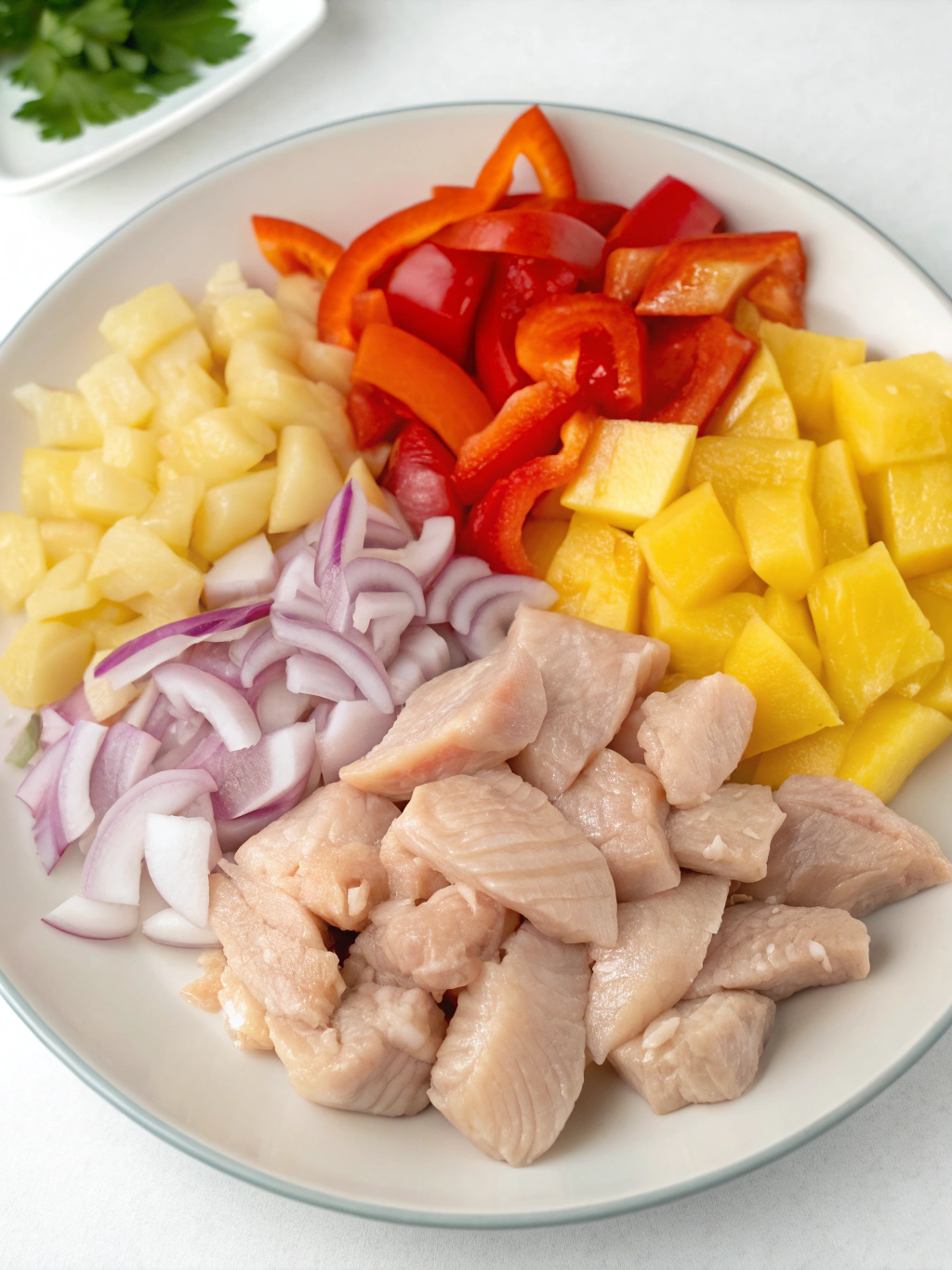 - 1 pound boneless, skinless chicken breasts, cut into 1-inch cubes