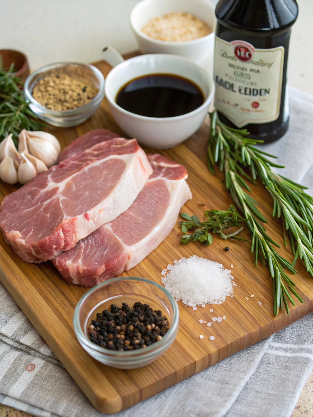 Remove the pork chops from the refrigerator 15 minutes before cooking to bring them to room temperature—this ensures even cooking throughout. Pat them thoroughly dry with paper towels (moisture is the enemy of a good sear). Season both sides generously with salt, pepper, garlic powder, and smoked paprika. The paprika adds a subtle smokiness that complements the balsamic beautifully.