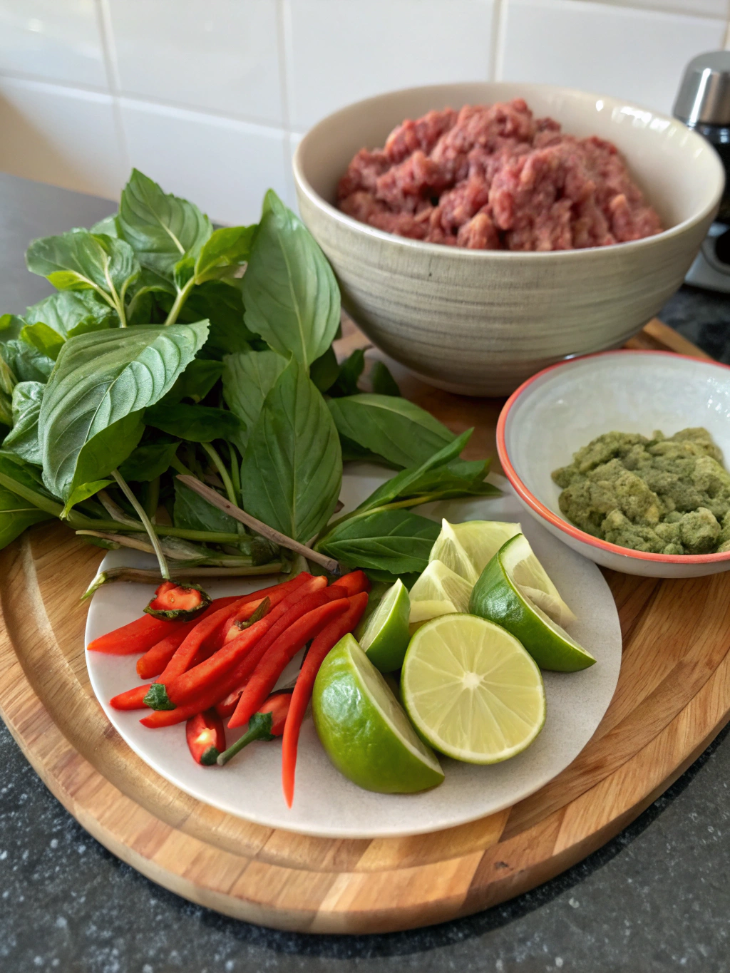 - 3 tablespoons Thai basil (fresh, or substitute with regular basil and a pinch of mint)
