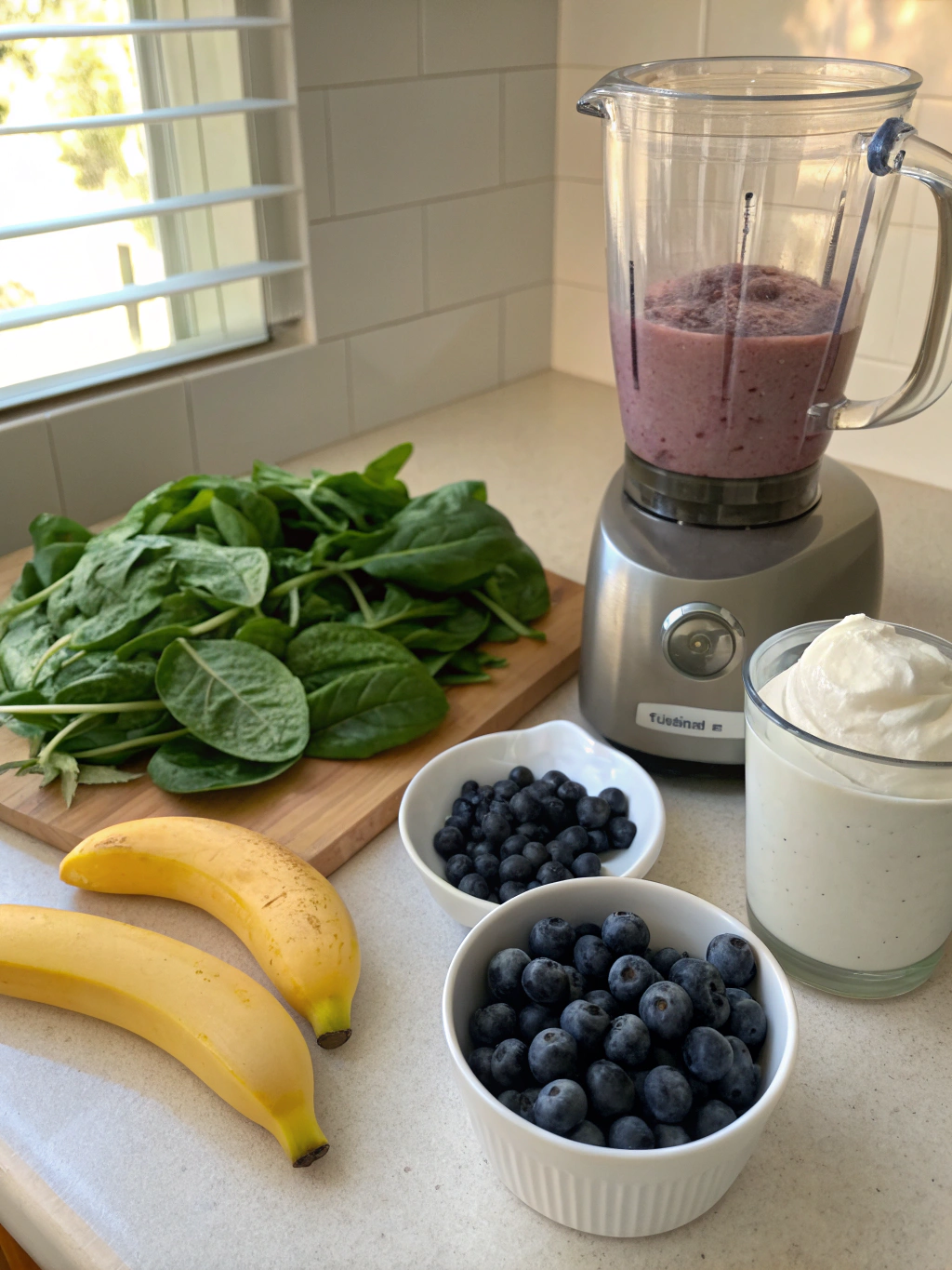 Measure out all ingredients and have them ready beside your blender. This mise en place approach will make your 5-minute smoothie process seamless and efficient. Pro tip: Keep frozen blueberries in stock for spontaneous smoothie cravings!