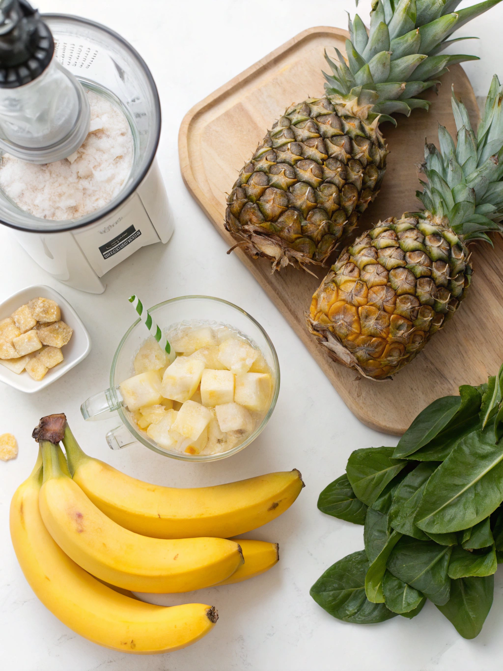 Use very ripe bananas and fresh (not frozen) pineapple. Add liquid ingredients first, and blend in short pulses, scraping down sides as needed.
