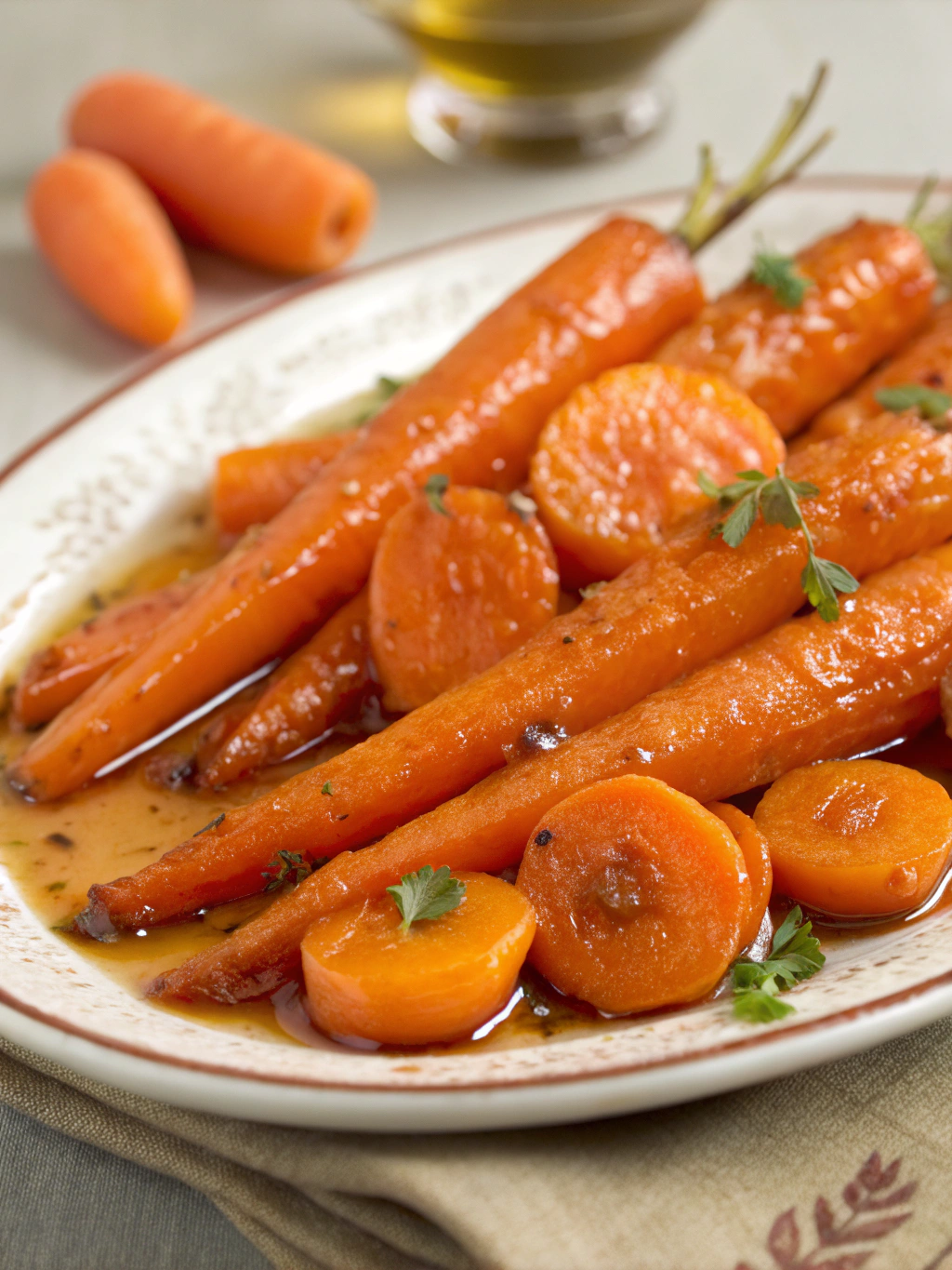 These vibrant orange carrots become irresistible when coated with the shimmering apricot glaze, creating a perfect balance of savory and sweet flavors that dance on your palate.