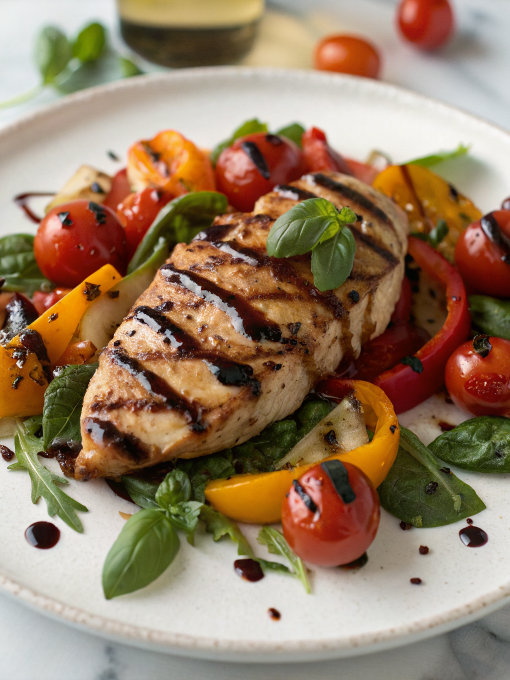 Classic Pairing: Serve sliced balsamic chicken over a bed of mixed greens with cherry tomatoes, fresh mozzarella pearls, and a drizzle of the reduced marinade as dressing for a complete Caprese-style salad.