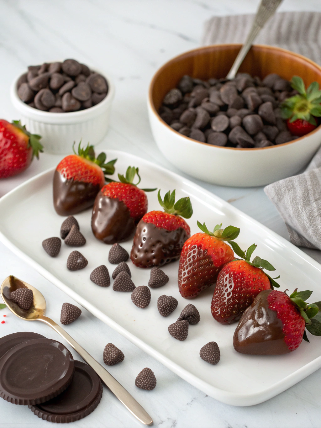 - Dip only half of each strawberry to reduce overall chocolate consumption while maintaining the festive appearance