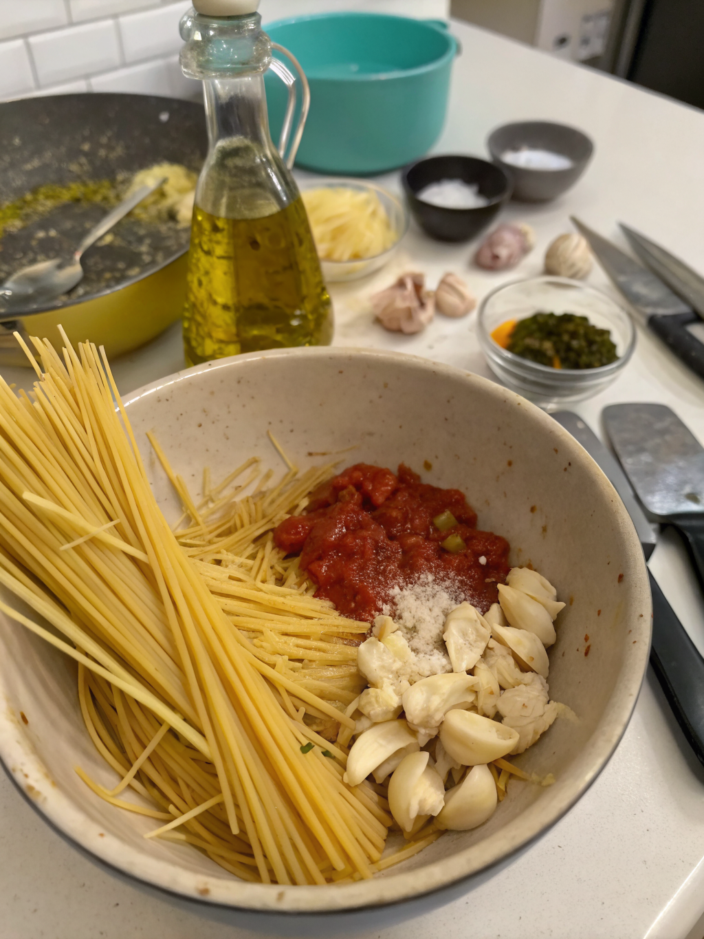 Cook spaghetti only until al dente (firm to the bite). Overcooked pasta becomes mushy when combined with the sauce. Studies show that al dente pasta has a lower glycemic index and better texture retention.