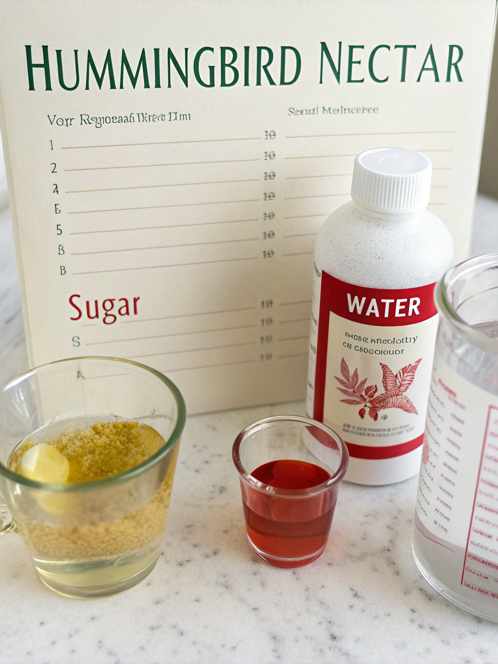 • Do NOT add: Red food coloring or dyes (unnecessary and potentially harmful to hummingbirds)