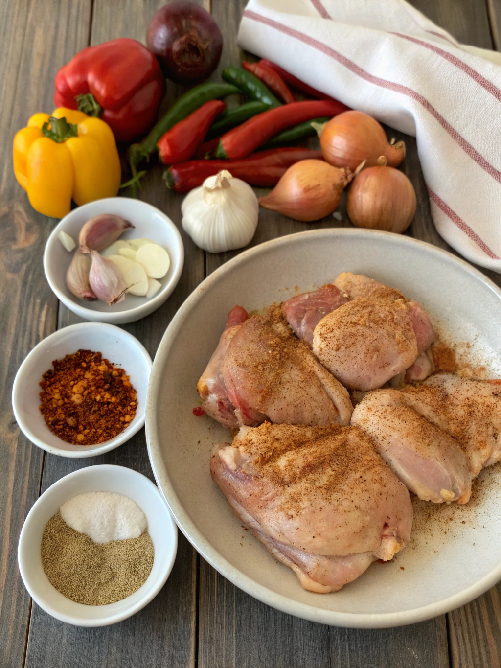 - 6 bone-in, skin-on chicken thighs (about 2.5 pounds) – or substitute with boneless, skinless thighs for a leaner option