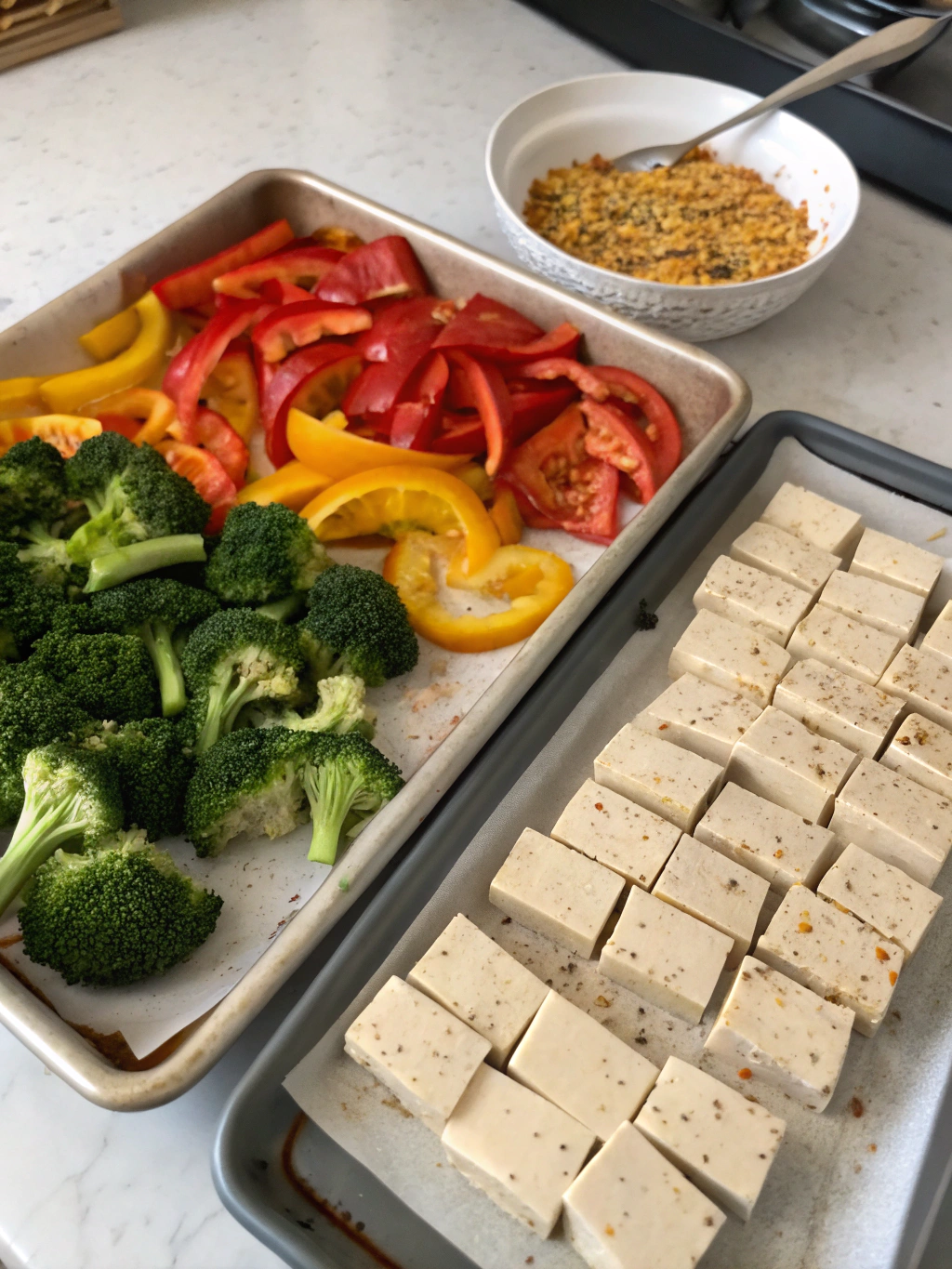 When tofu pieces touch, they steam rather than roast. Always use a large enough sheet pan or divide ingredients between two pans to ensure proper air circulation and maximum caramelization.