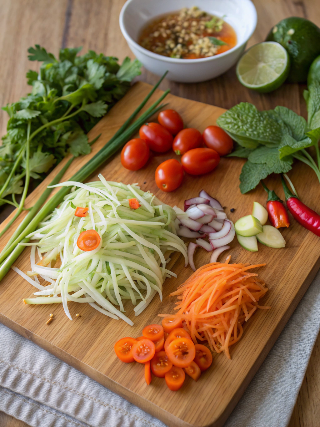 Substitution Tip: Can't find green papaya? Try using cucumber, zucchini, or even green mango as alternatives that maintain the crisp texture essential to this dish.