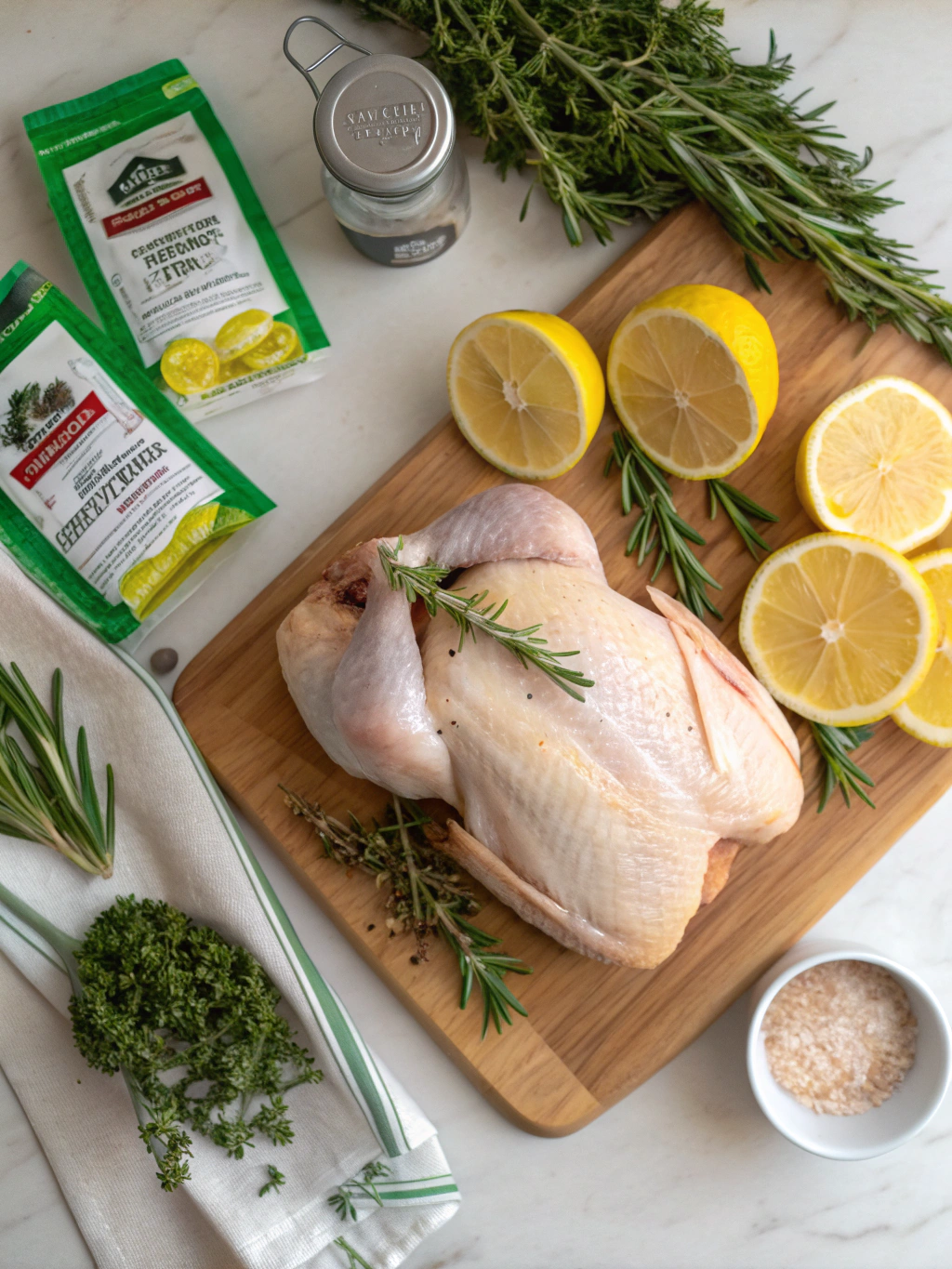 Combine all dry seasonings in a small bowl. Rub the chicken with olive oil, ensuring complete coverage. Then apply the seasoning mix thoroughly, including under the skin for maximum flavor penetration. Stuff the cavity with lemon quarters and garlic cloves to infuse moisture and flavor from the inside out.